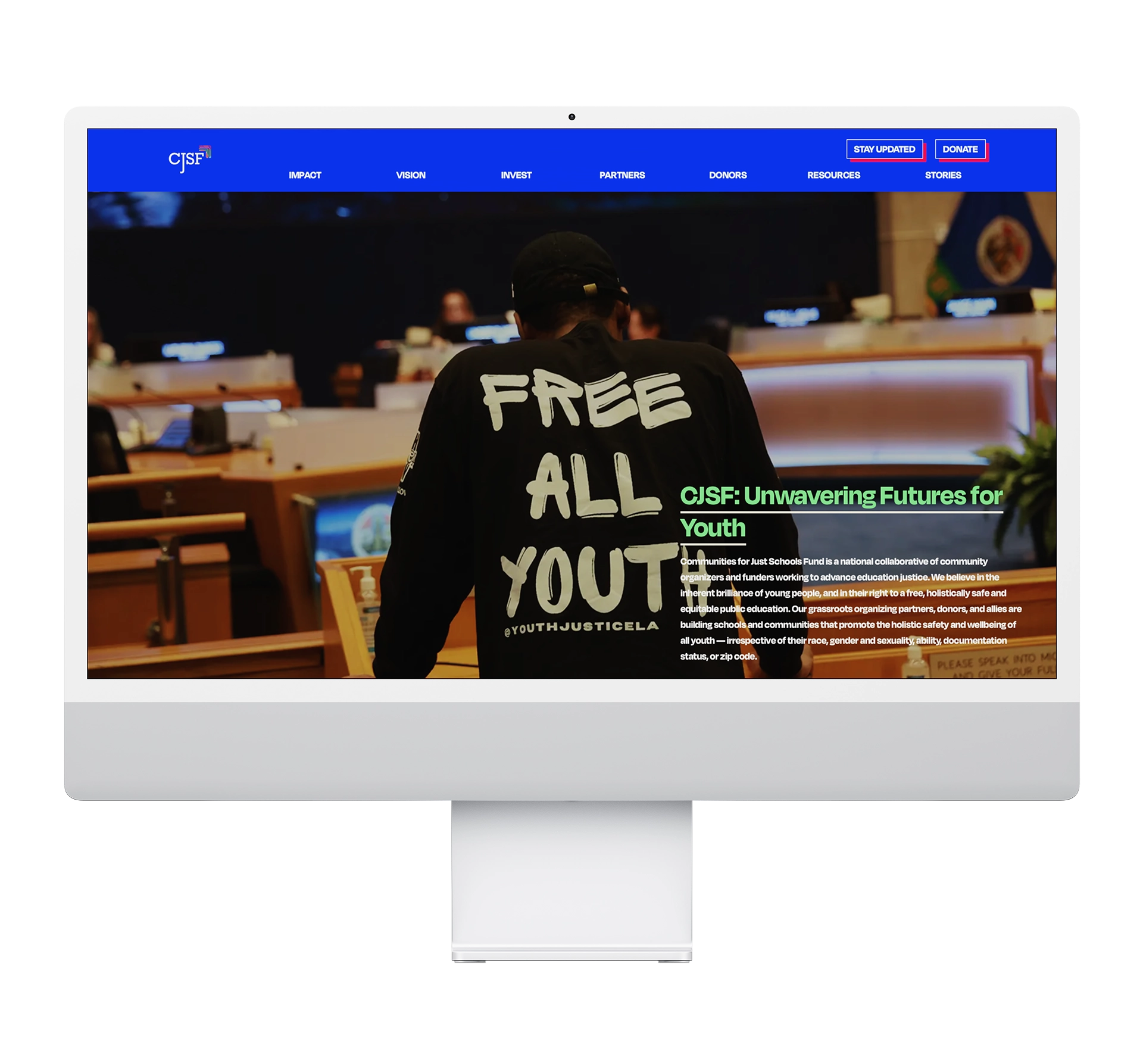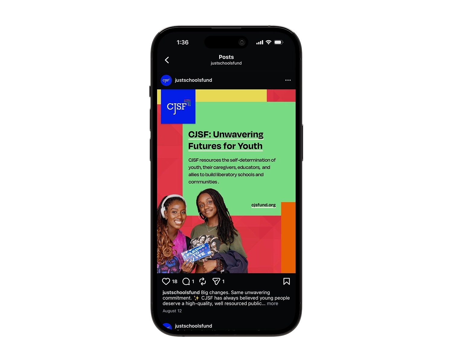 x∧Sol partnered with Communities for Just Schools Fund (CJSF) to launch a comprehensive brand refresh that positions them as a leading force in the education justice movement. Their new mark expanded into a complete design system that reflects the joy and brilliance of the communities they serve and CJSF’s commitment to the young people leading the way. Armed with a bold, user-friendly website that simplifies their message and amplifies resources, CJSF is able to translate their impact into shareable stories. Most recently, they launched a new podcast — which we branded — continuing our communications partnership with exciting new initiatives.Explore their new site, fresh brand and powerful stories.Website Design & Development